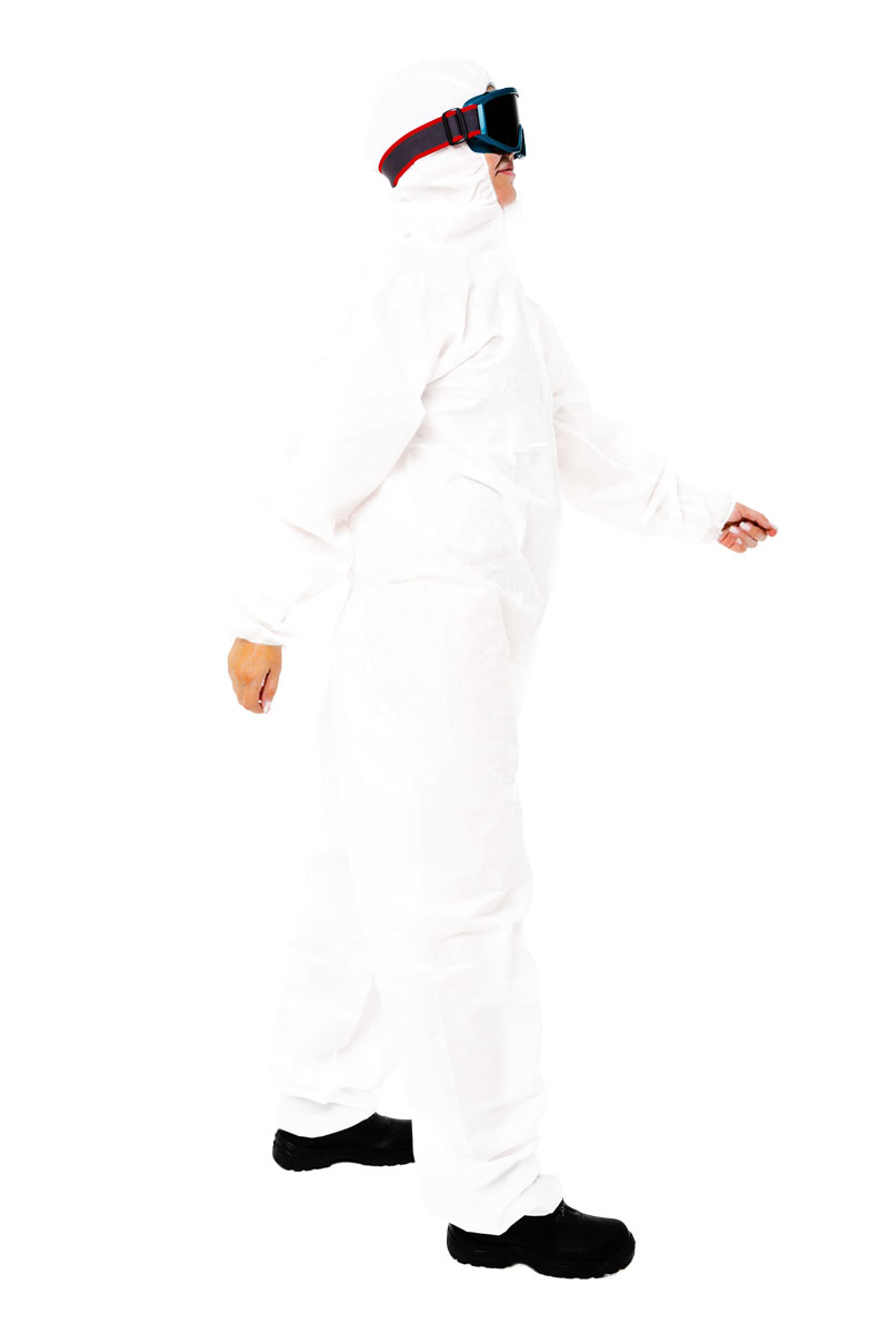 Комбинезон изготовлен из нетканого ламинированного материала на основе полипропилена и полиэтилена плотностью 63 г/м². Многослойная структура эффективно препятствует проникновению твёрдых частиц, аэрозолей и жидкостей, при этом оставаясь достаточно лёгкой и удобной для длительного ношения.