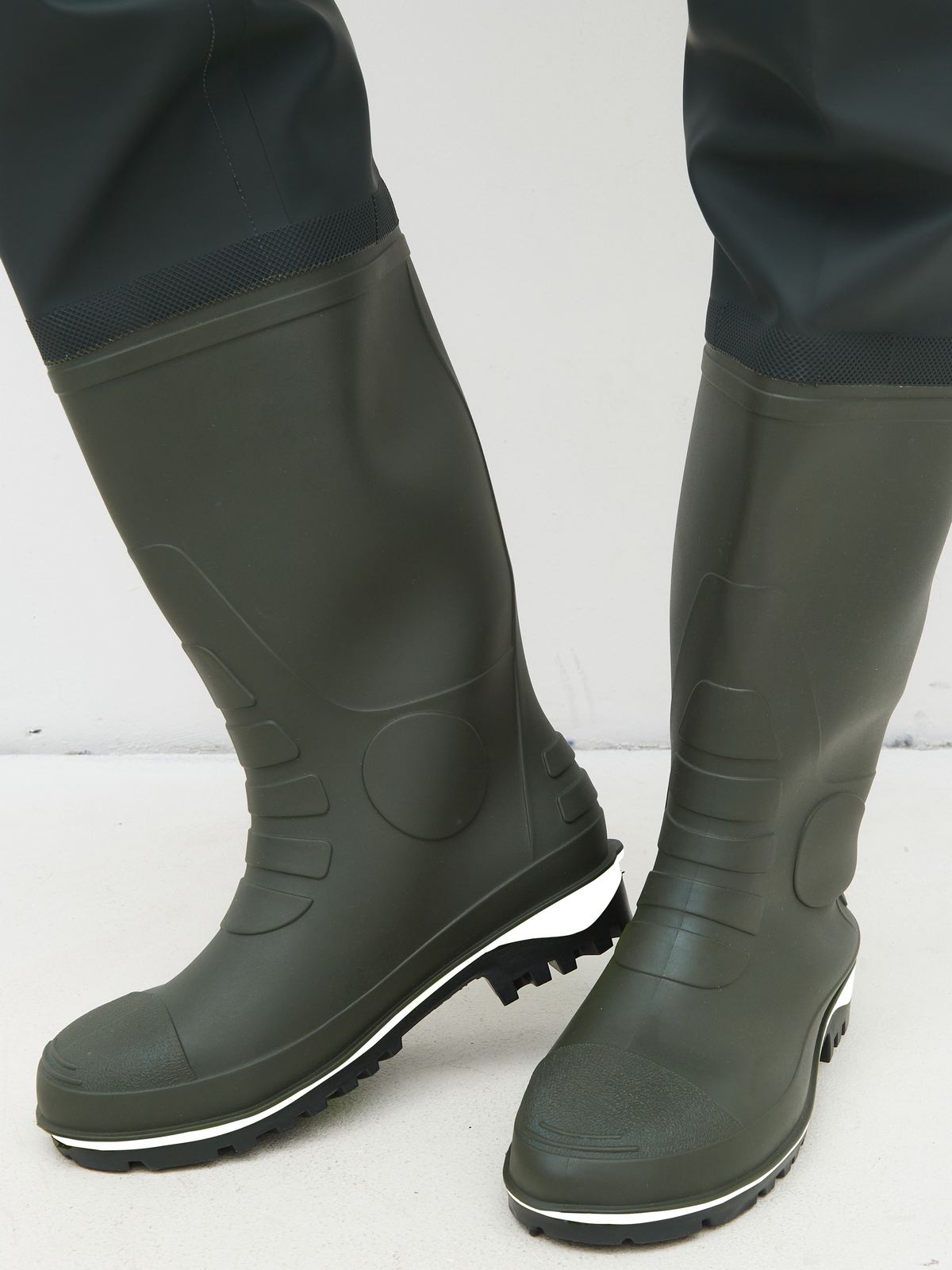 Изготовлен на основе сапог из прочного ПВХ, обеспечивающих отличную защиту от влаги. Верх выполнен из водонепроницаемой ПВХ-ткани (винитол) и надежно приварен к сапогам с использованием современного итальянского оборудования методом сварки током высокой частоты, что гарантирует герметичность соединений.