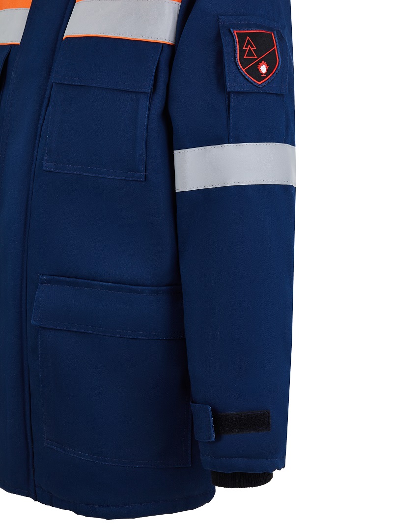 Костюм выполнен из термоогнестойкой, антистатической ткани Флеймтуфф (Flametuff) (88% х/б, 12% ПА, в т.ч. 2% антистатическая нить) плотностью 265 г/кв.м c НМВО, дополнительным слоем Флеймтуфф (Flametuff) (88% х/б, 12% ПА, в т.ч. 2% антистатическая нить ) плотностью 305 гр/кв.м (усилительные накладки) с НМВО, c термостойким утеплителем плотностью 150 г/кв.м и подкладкой плотностью 170 г/кв.м