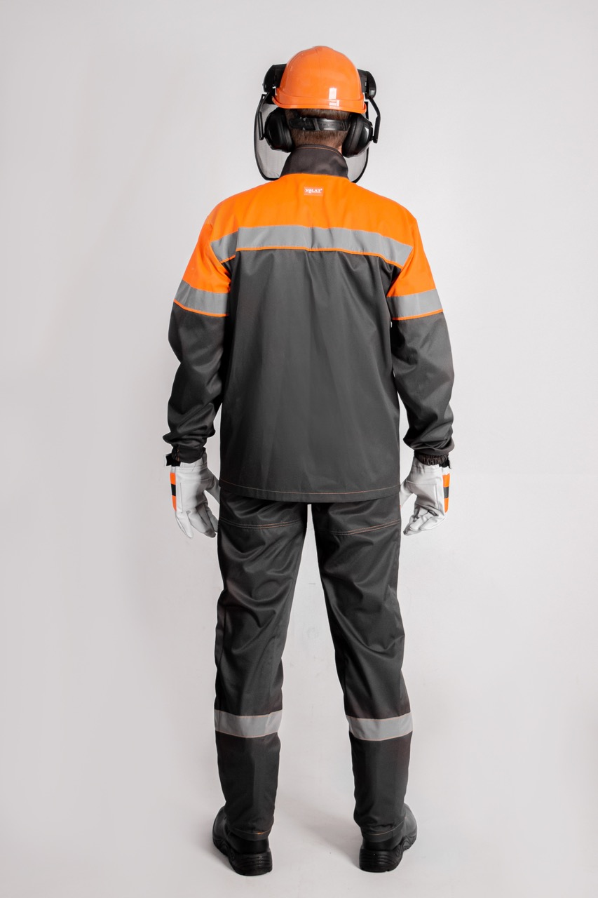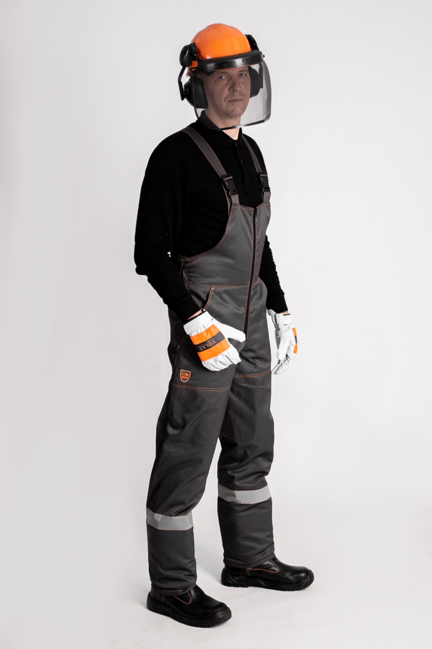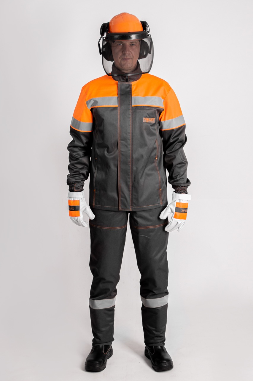 Костюм состоит из куртки и полукомбинезона. Предназанчен для работы в лесу и деревообрабатывающей промышленности. Защищает от: