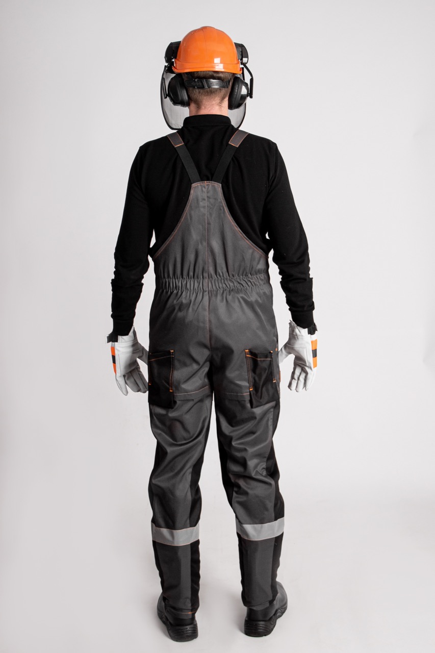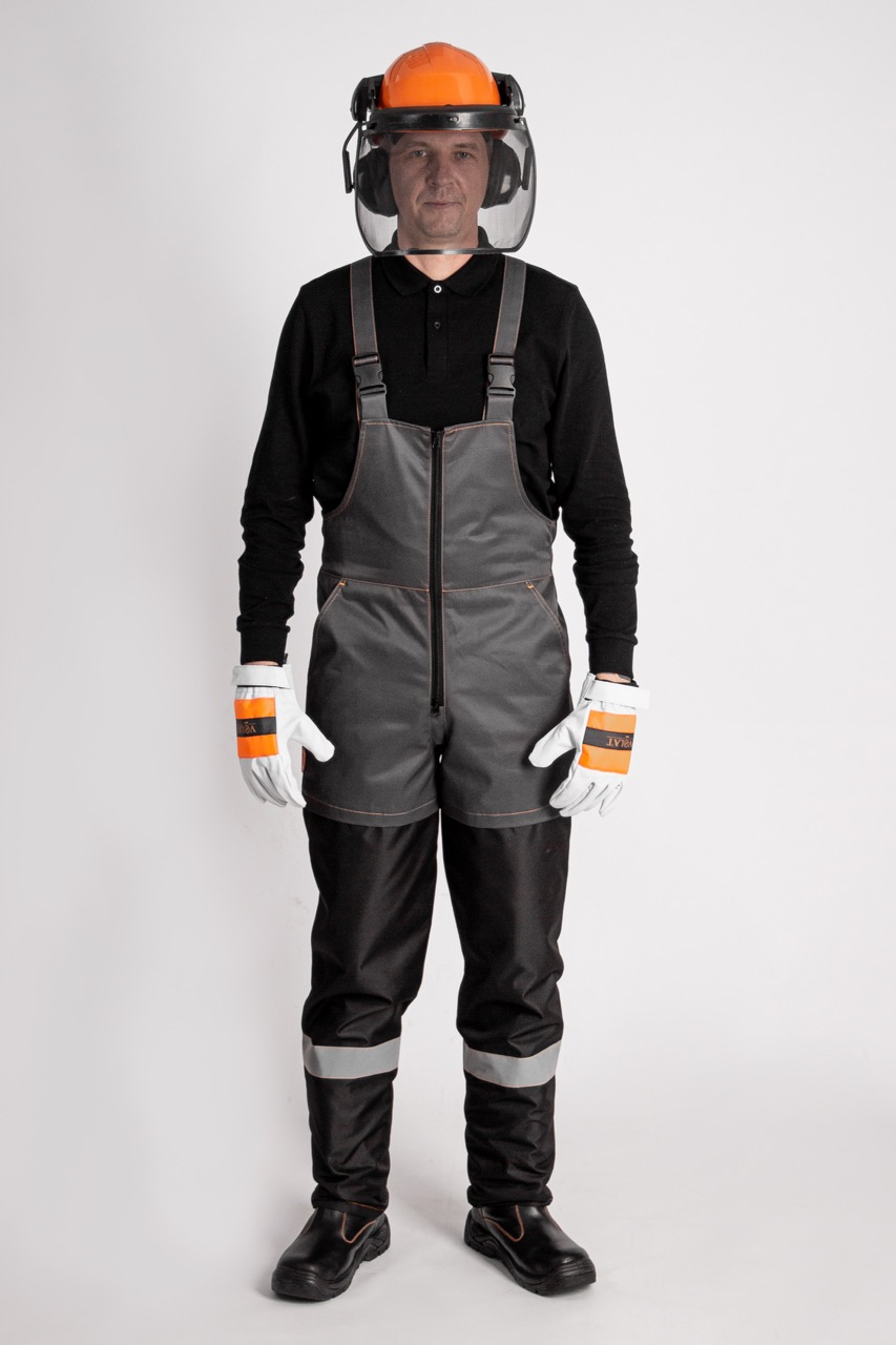 Защитная прокладка из пилостойкого материала: по передним половинкам полукомбинезона.