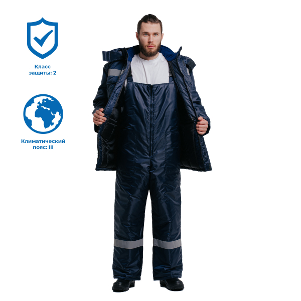Костюм Уренгой (куртка + полукомбинезон) — это тёплый, функциональный и износостойкий зимний комплект 2 класса защиты, созданный специально для эксплуатации в III климатическом поясе, где морозы, резкие ветра и ограниченная видимость — привычное рабочее окружение.