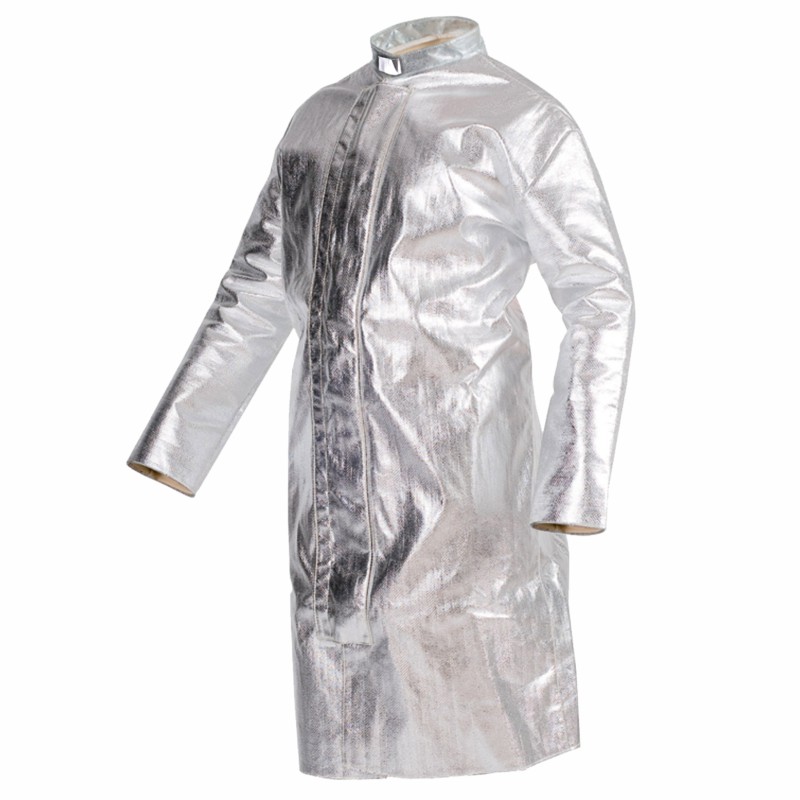 Удлиненная термостойкая куртка ГЕФЕСТ® (арт. 111047) — профессиональная защитная одежда для работы в условиях интенсивного теплового воздействия и контакта с расплавленным металлом. Изделие выполнено из 100% алюминизированного пара-арамидного волокна, которое эффективно отражает тепловое излучение и обеспечивает высокий уровень защиты при работе в металлургии и других тяжелых отраслях.