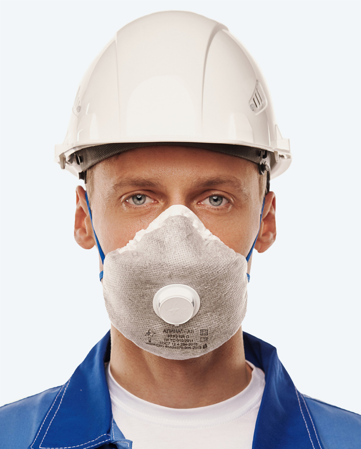 АЛИНА-АВ – фильтрующая полумаска второго класса (FFP2) с дополнительной защитой от органических и неорганических газов. Респиратор одноразовый с клапаном выдоха. Защищает от всех видов аэрозолей, в том числе сварочных, при их концентрации до 12 ПДК, от газов органического и неорганического происхождения, паров от нагрева металлов и озона.