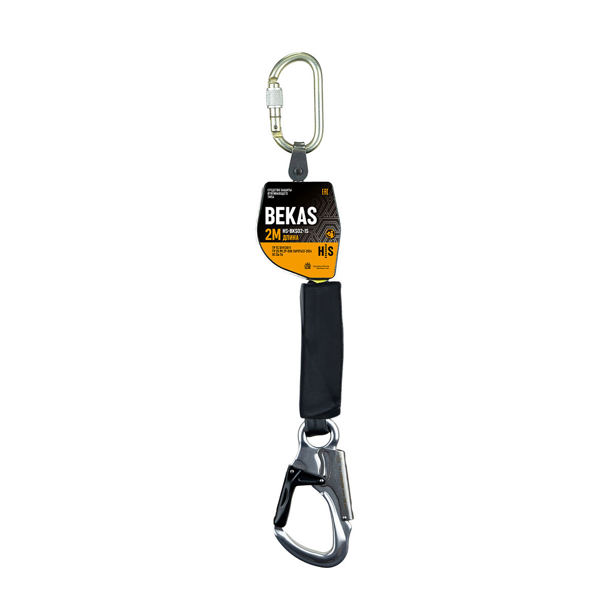 Двухплечевое СЗВТ BEKAS относится к компонентам соединительной подсистемы системы обеспечения безопасности работ на высоте (страховочной системы). Представляет собой средство защиты с функцией самоблокировки и автоматическим средством натяжения и возврата втягивающегося троса. Функция рассеивания энергии осуществляется разрывным амортизатором. Используется одновременно для обеспечения подвижности пользователя и для защиты от падения.