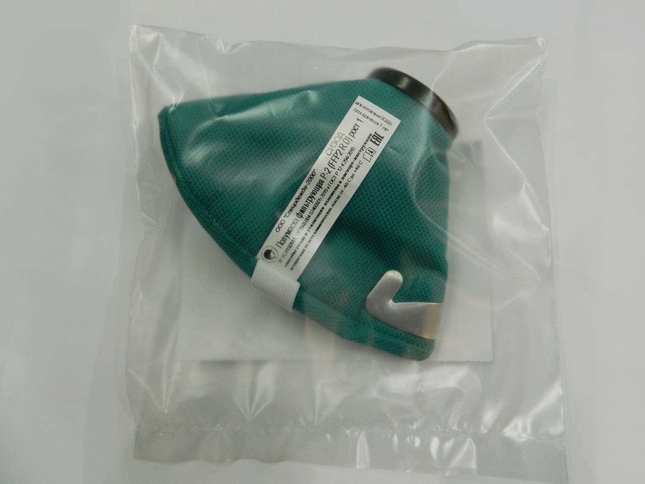 Полумаска «Р-2» представляет собой четырехслойную фильтрующую полумаску с носовым зажимом, оголовьем, двумя клапанами вдоха и клапаном выдоха в виде грибка. Наружный и внутренний слои полумаски изготавливаются из нетканого полотна. Под наружным слоем расположены два слоя высокоэффективного фильтрующего материала типа ФП.